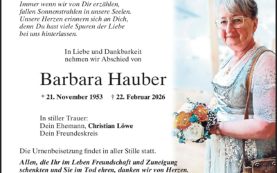 Nachruf für Barbara „Bärwe“ Hauber Freiwillige Feuerwehr Regen Liebe Familie, geschätzte Kameradinnen und Kameraden, verehrte Trauergemeinde, Wir nehmen Abschied von einer Frau, die für die Freiwillige Feuerwehr Regen weit mehr war als ein einfaches Mitglied. Wir...